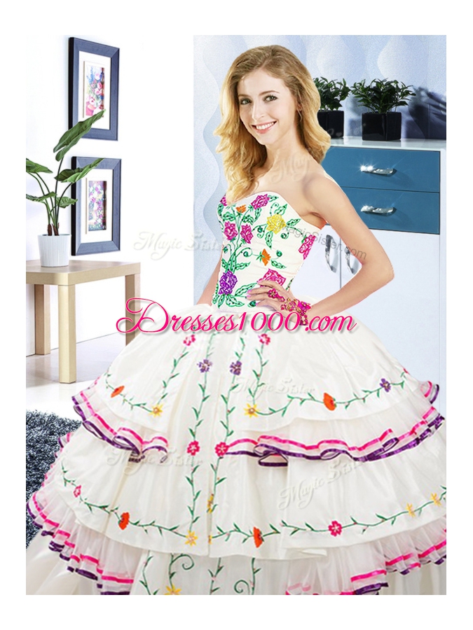Luxurious Ruffled Sweetheart Sleeveless Lace Up 15 Quinceanera Dress White Organza and Taffeta