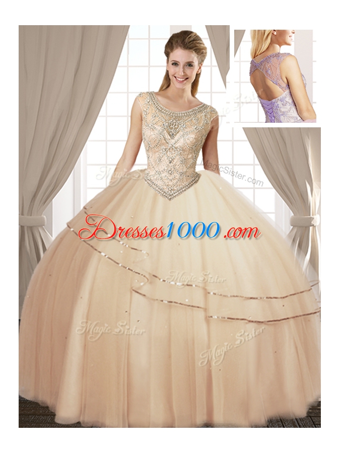 Scoop Sleeveless Beading Lace Up Quinceanera Dress