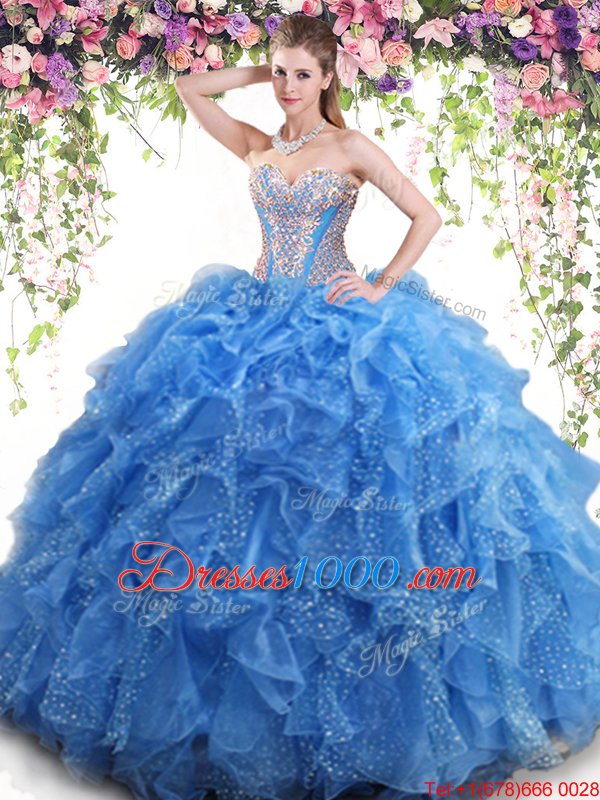 Mermaid Aqua Blue Lace Up Sweet 16 Dresses Beading and Ruffles Sleeveless Floor Length
