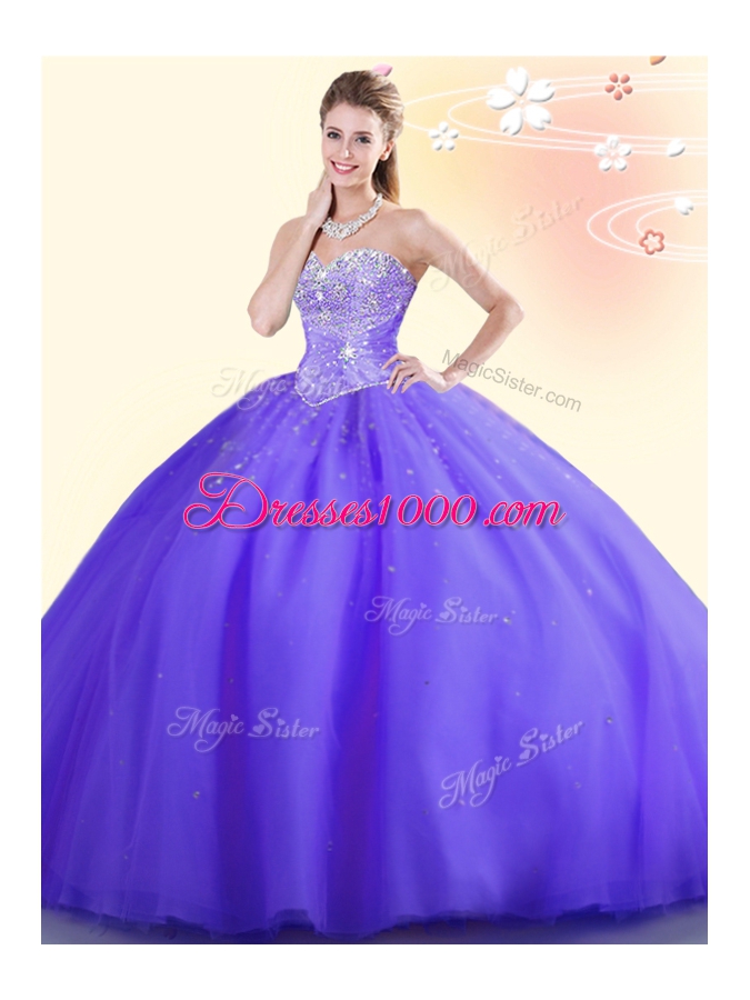 Fantastic Floor Length Lace Up Ball Gown Prom Dress Purple and In for Military Ball and Sweet 16 and Quinceanera with Beading