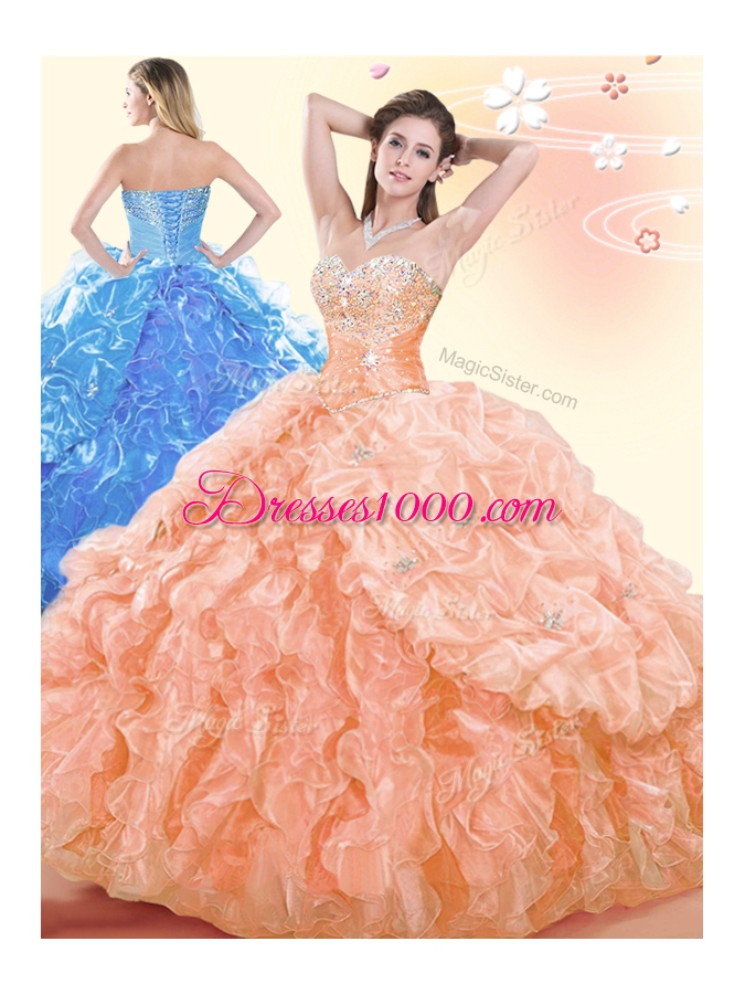 Fancy Orange Lace Up Sweetheart Beading and Ruffles and Pick Ups Quinceanera Gowns Organza Sleeveless