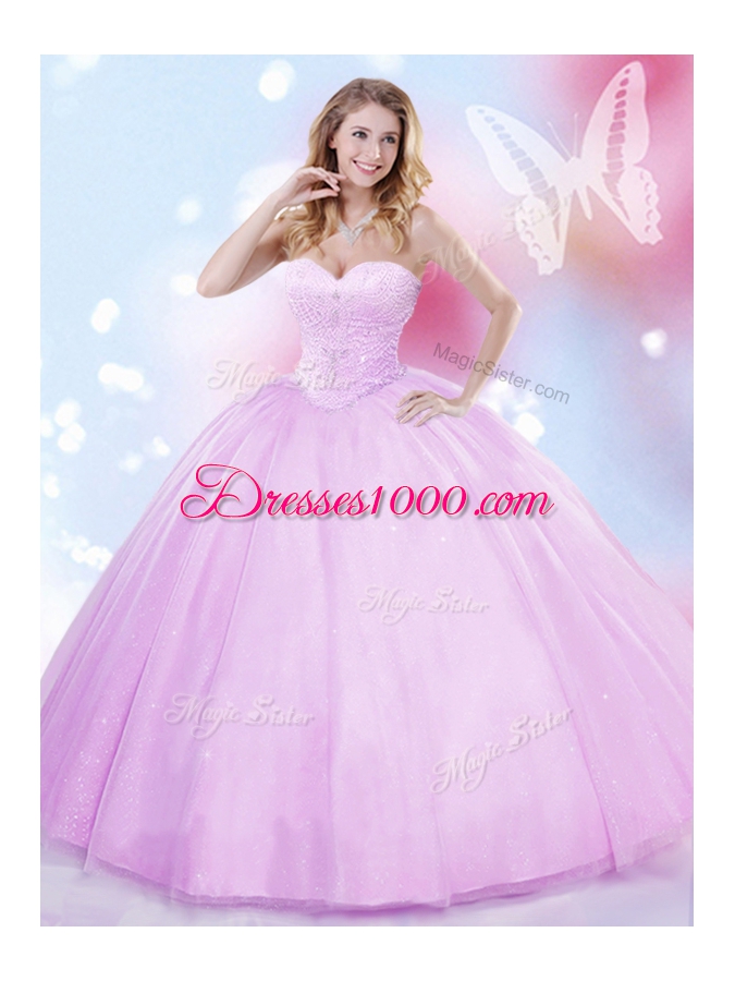 Sweetheart Sleeveless Tulle Sweet 16 Dresses Beading Lace Up
