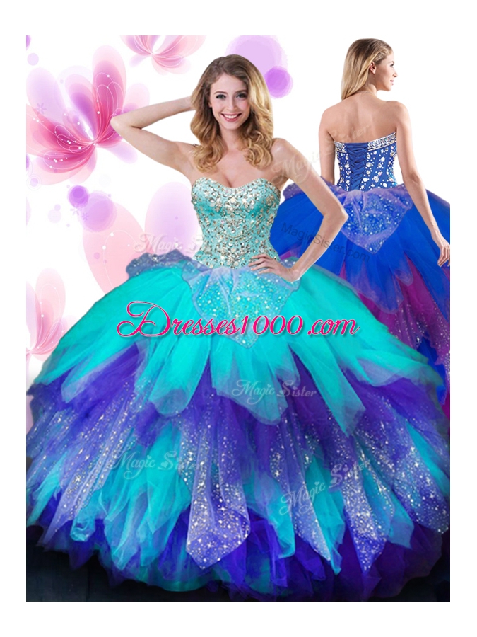 Multi-color Sweetheart Lace Up Beading and Ruffles 15 Quinceanera Dress Sleeveless