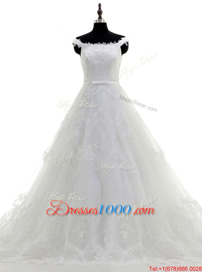 Fantastic Sweep Train A-line Wedding Gowns White Scoop Tulle Sleeveless With Train Zipper