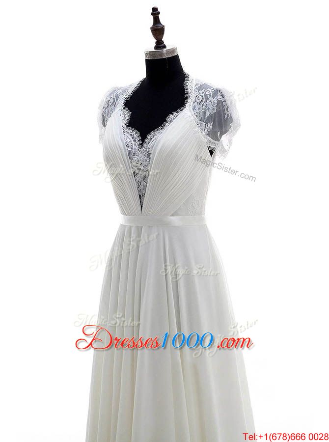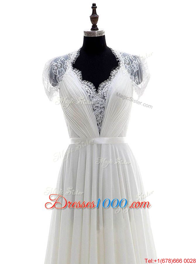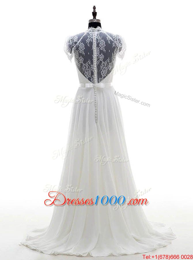 Sleeveless Brush Train Beading and Lace Clasp Handle Bridal Gown