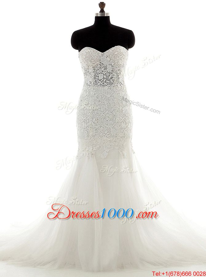 Mermaid Sleeveless Brush Train Lace Up With Train Lace Wedding Gown