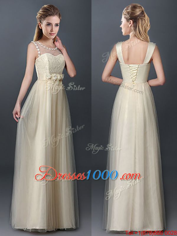 Nice Scoop Champagne Sleeveless Tulle Lace Up Quinceanera Court of Honor Dress for Prom and Party and Wedding Party