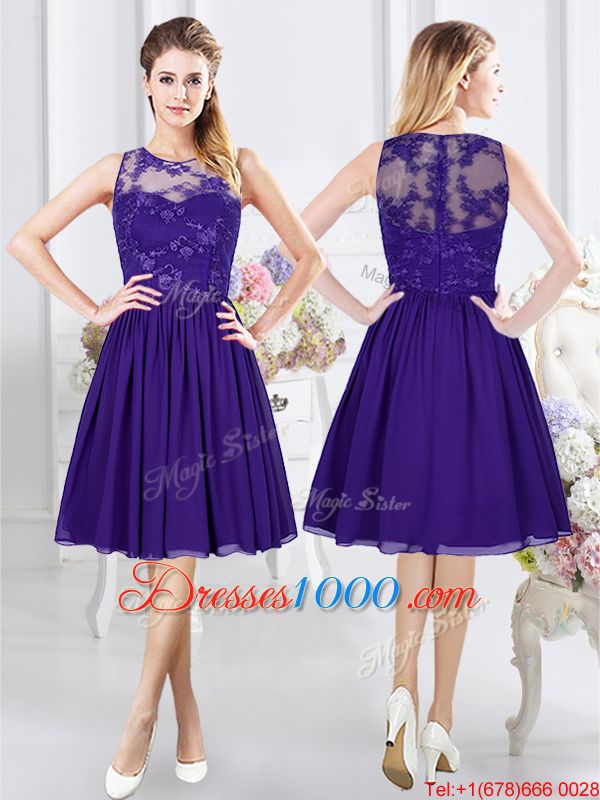 Champagne Lace Lace Up Scoop Sleeveless Knee Length Quinceanera Dama Dress Lace and Appliques