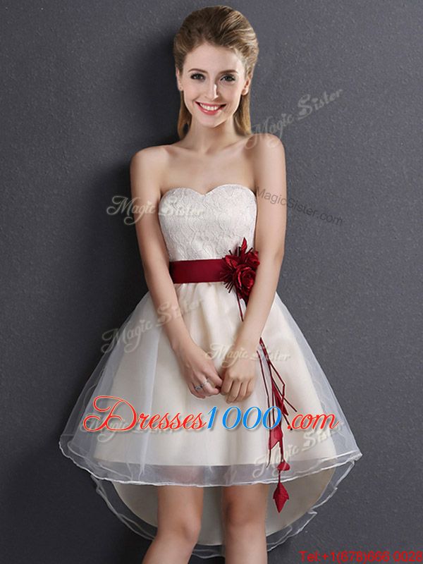 Low Price A-line Dama Dress Champagne Sweetheart Organza Sleeveless High Low Lace Up