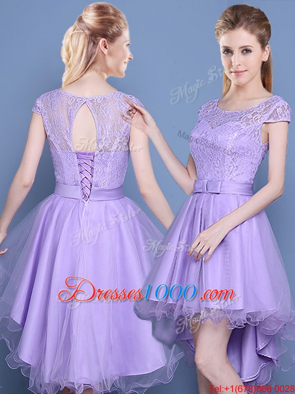 Affordable Scoop Cap Sleeves High Low Lace Lace Up Vestidos de Damas with Lavender