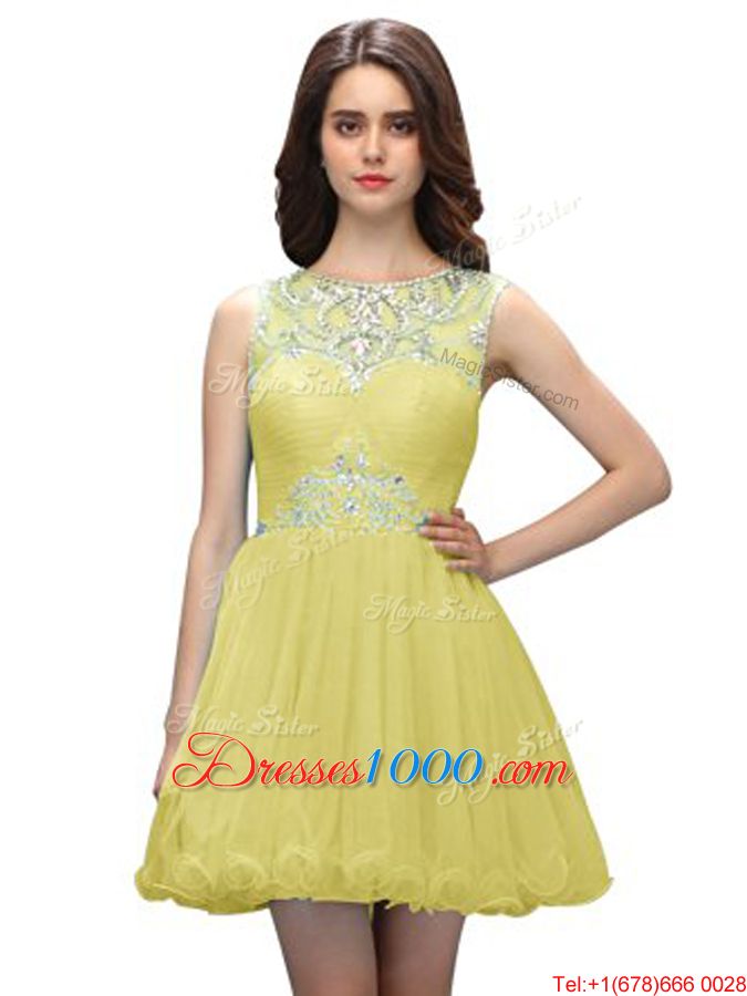 Scoop Sleeveless Zipper Evening Wear Light Yellow Organza