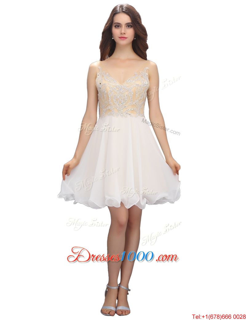 White Spaghetti Straps Backless Beading Prom Evening Gown Sleeveless