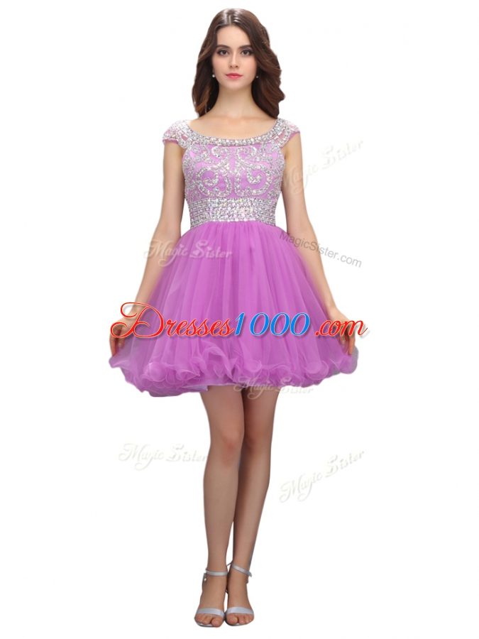 Custom Designed Cap Sleeves Mini Length Beading Zipper with Lilac