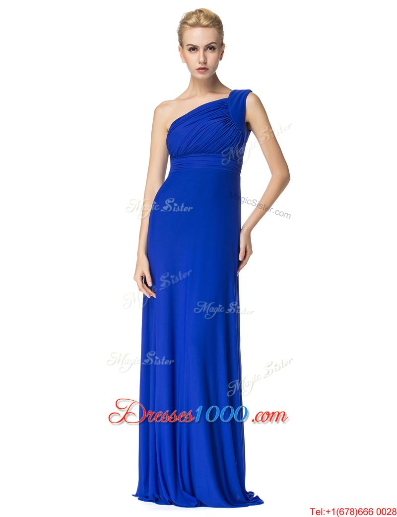 Glamorous Floor Length Royal Blue Homecoming Party Dress One Shoulder Sleeveless Side Zipper