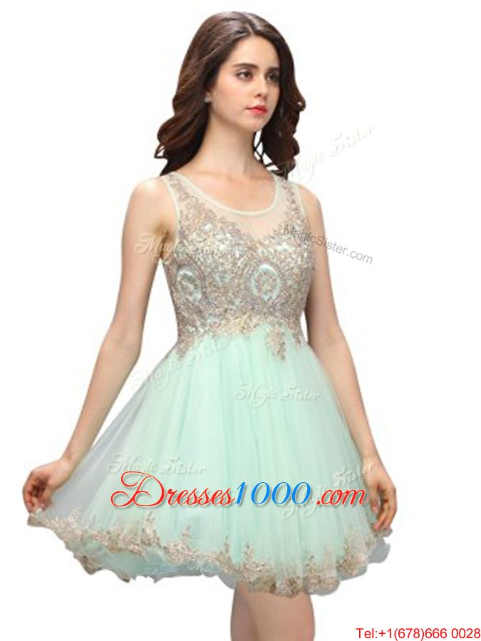 Custom Design Scoop Apple Green A-line Beading and Appliques Zipper Organza Sleeveless Mini Length