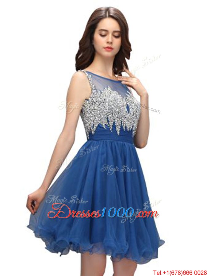 Hot Selling Blue Sleeveless Beading Knee Length Evening Outfits