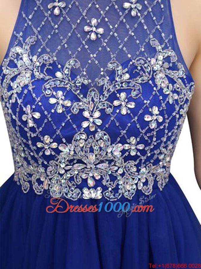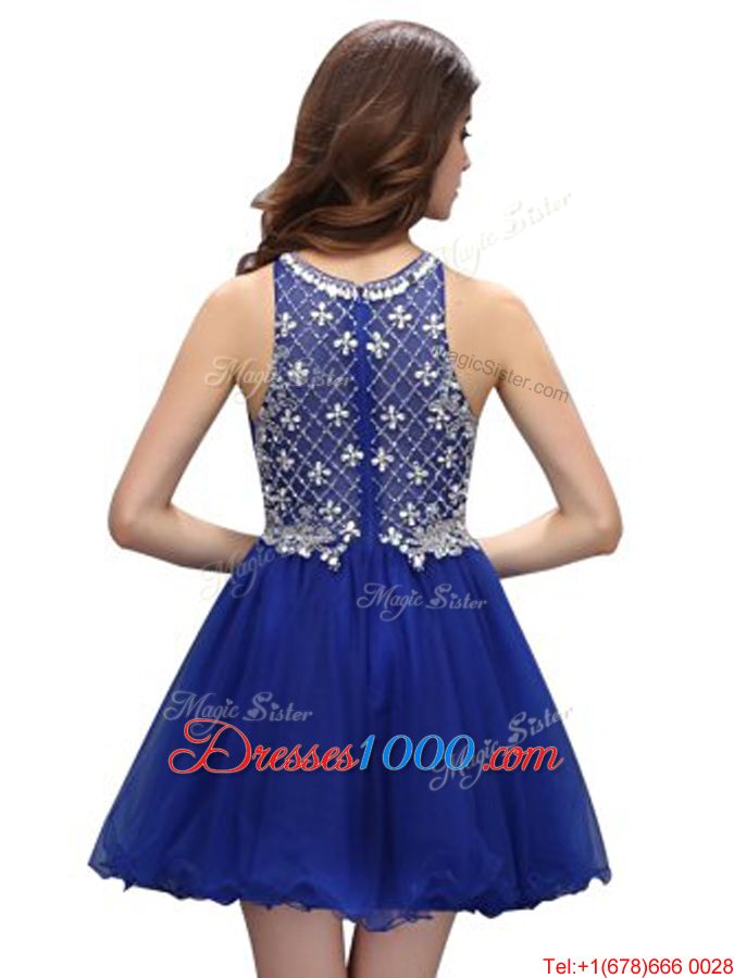 Scoop Beading Juniors Evening Dress Royal Blue Zipper Sleeveless Mini Length