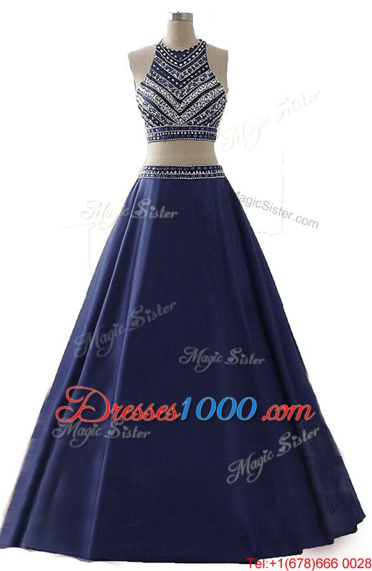 Chiffon Scoop Sleeveless Zipper Beading Prom Dresses in Navy Blue