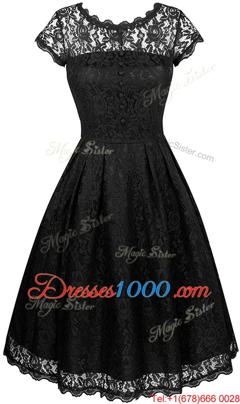 Exceptional Scalloped Black Zipper Homecoming Dresses Lace Short Sleeves Knee Length