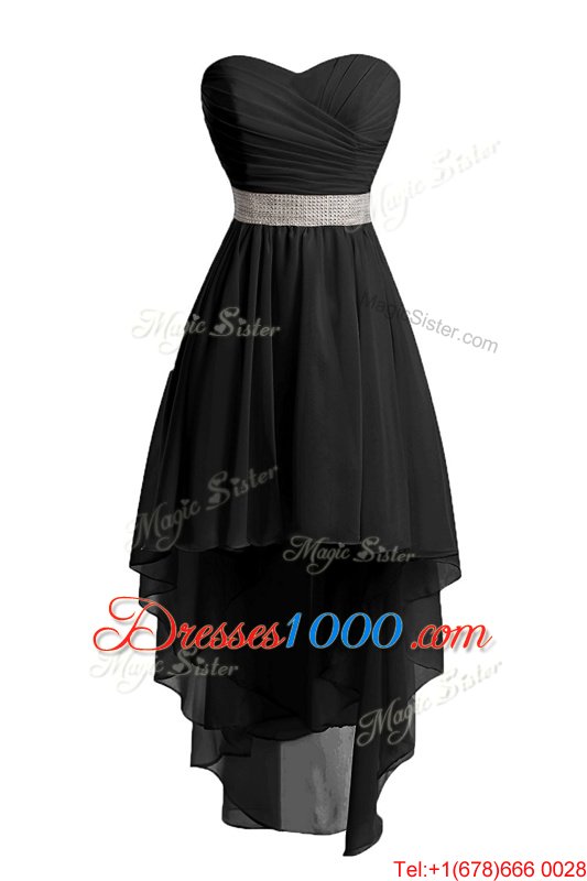 Black Organza Lace Up Sweetheart Sleeveless High Low Homecoming Dress Belt