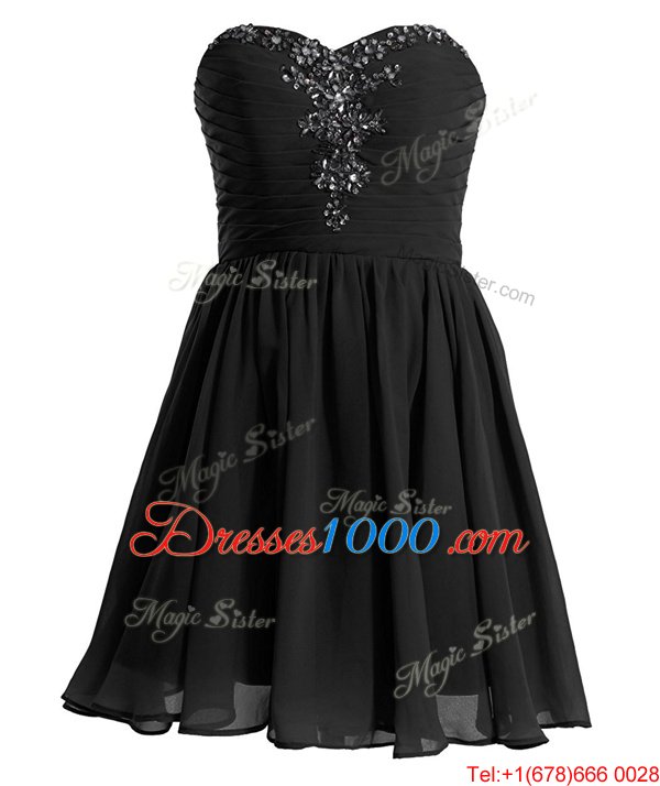 Nice Mini Length Black Party Dress for Girls Sweetheart Sleeveless Lace Up