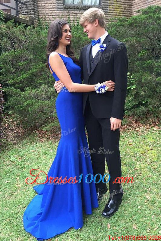Mermaid Royal Blue Zipper Scoop Beading Homecoming Party Dress Chiffon Sleeveless Brush Train