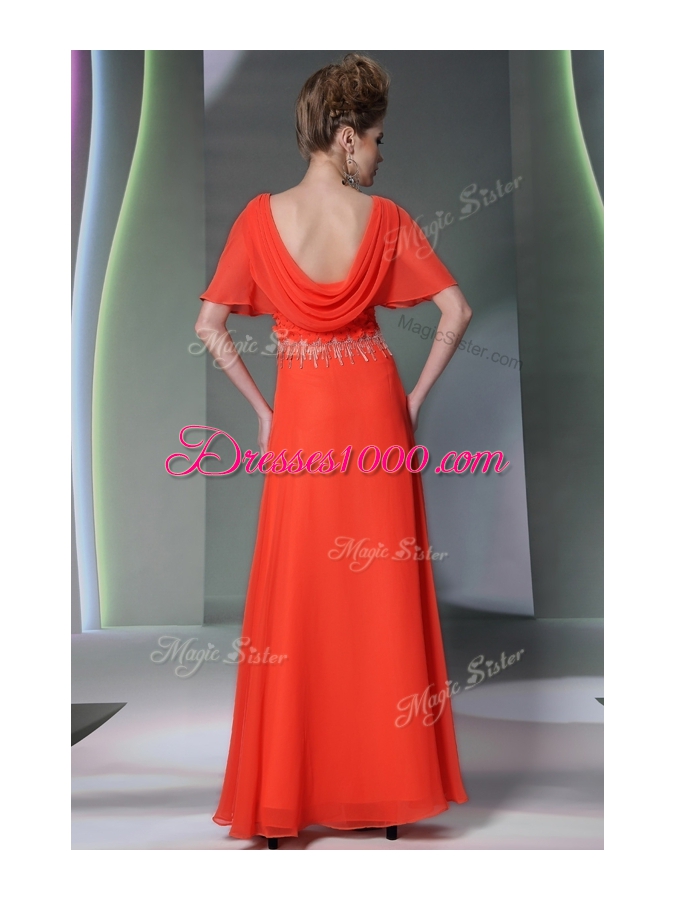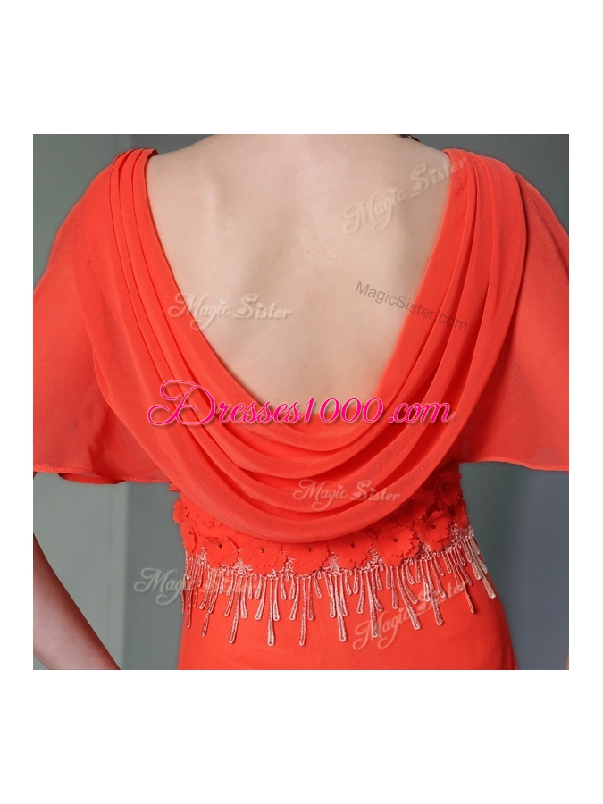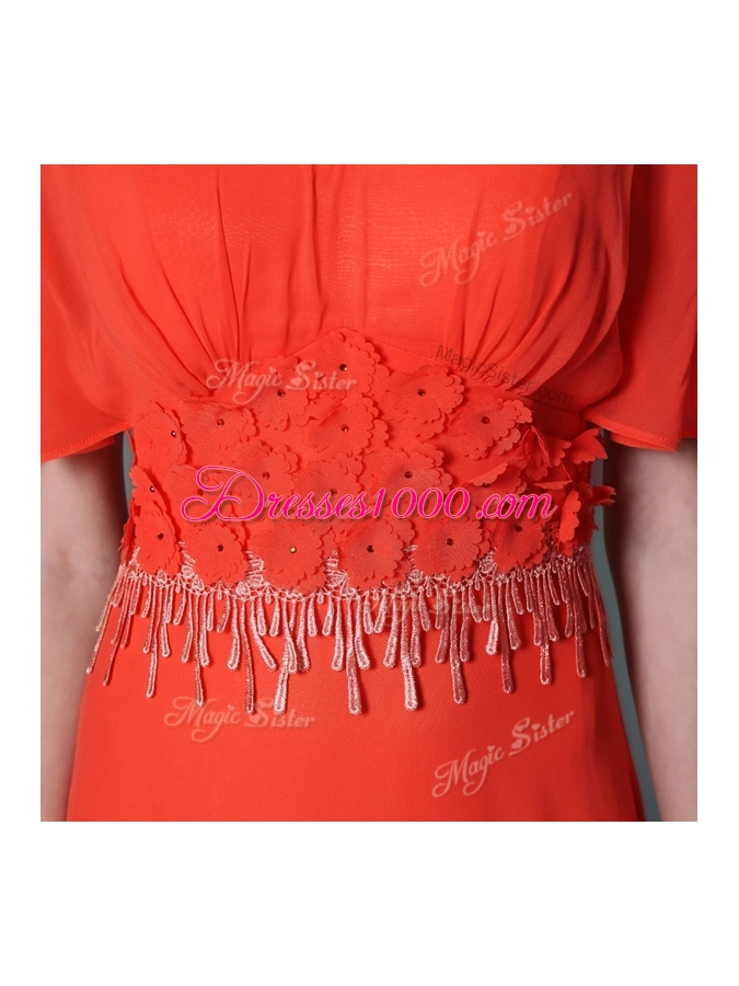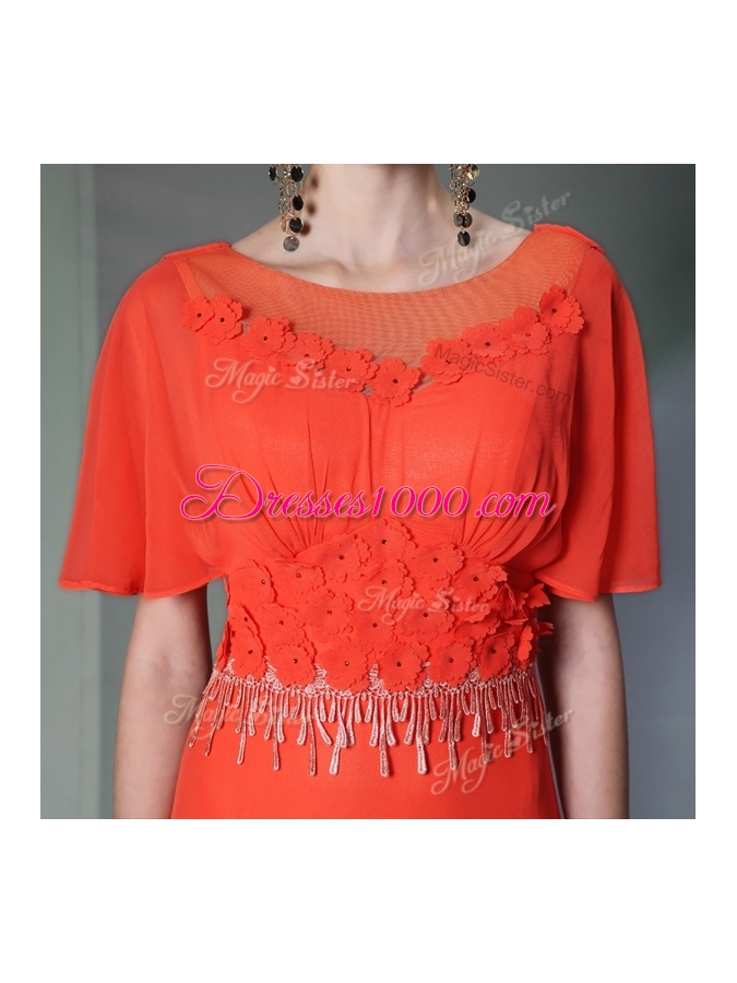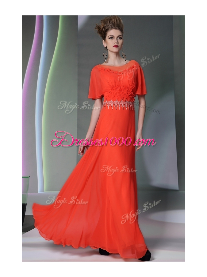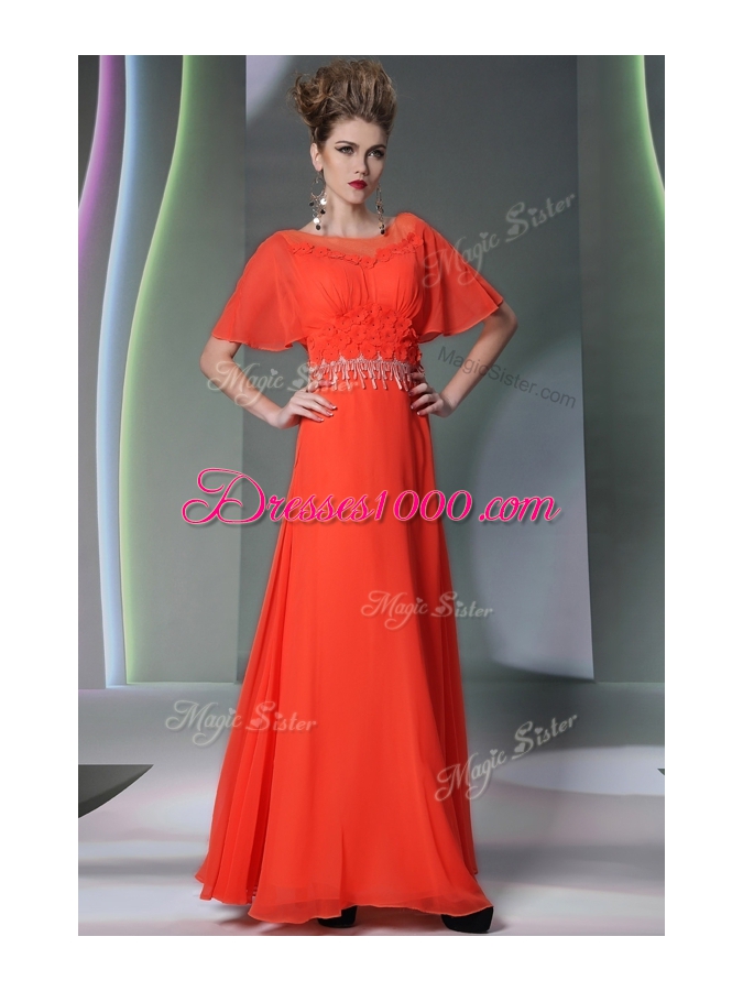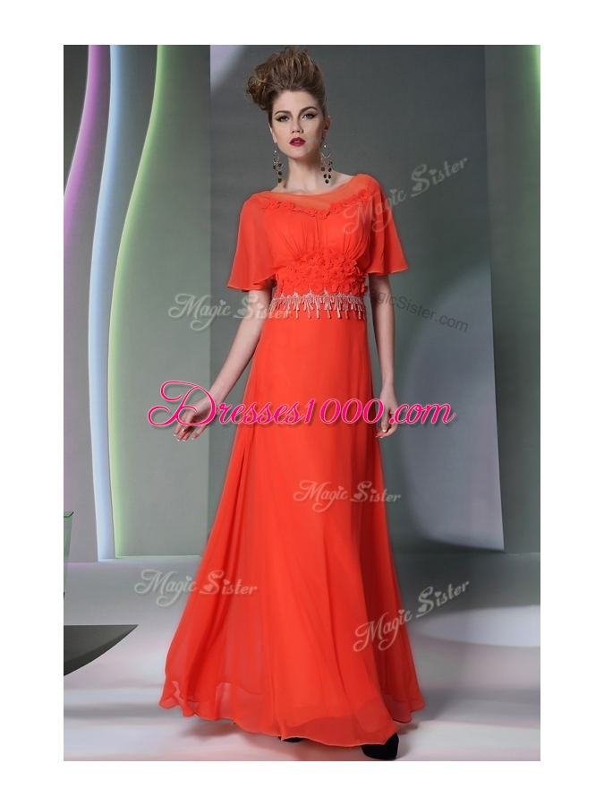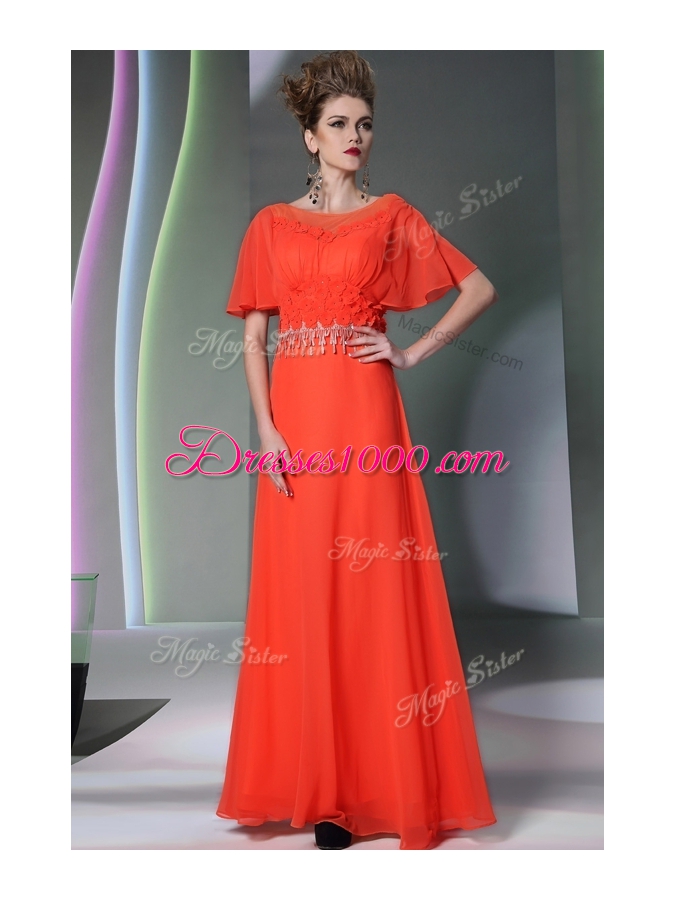 Fitting Scoop Short Sleeves Appliques Side Zipper Prom Dress
