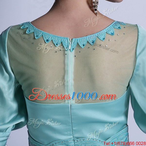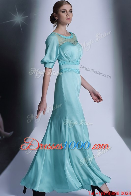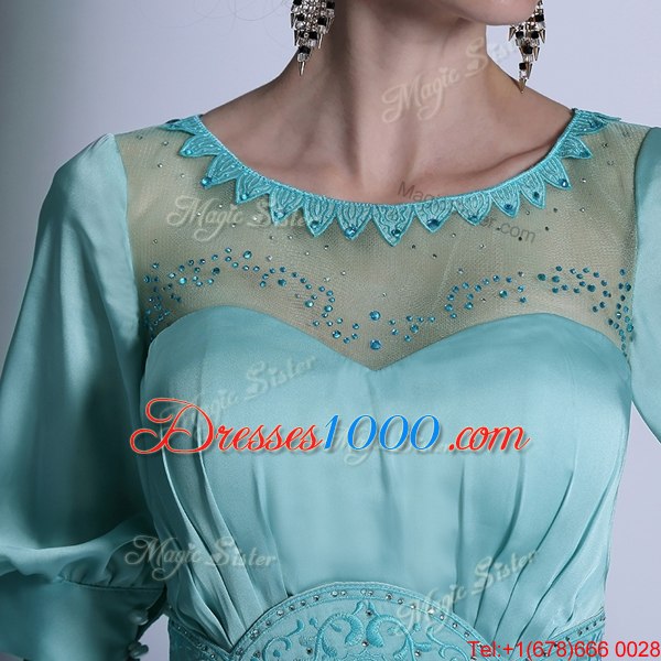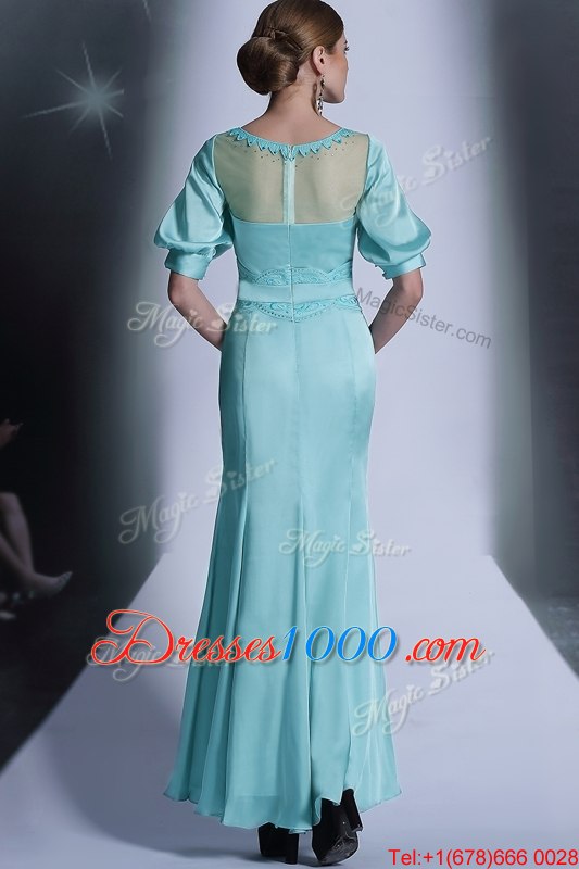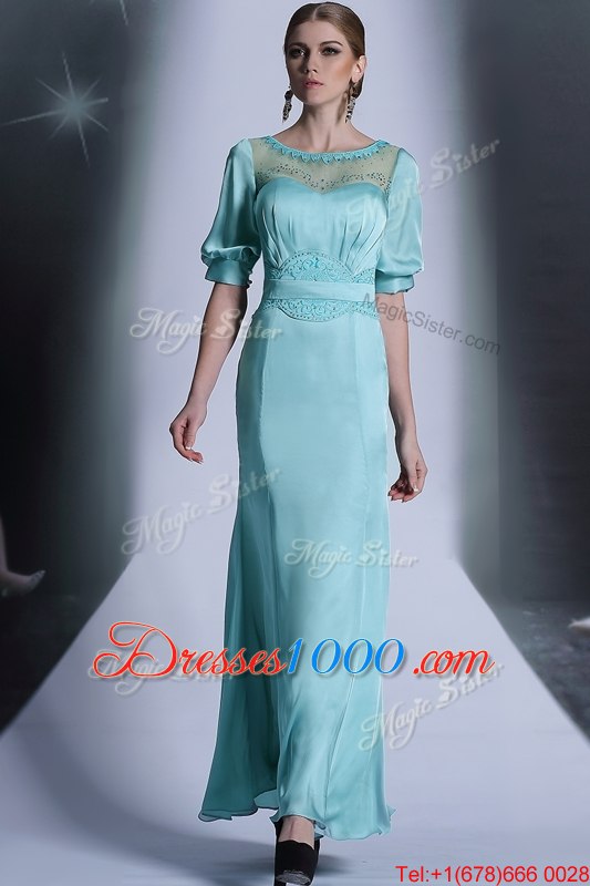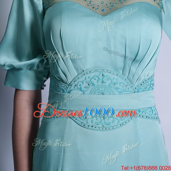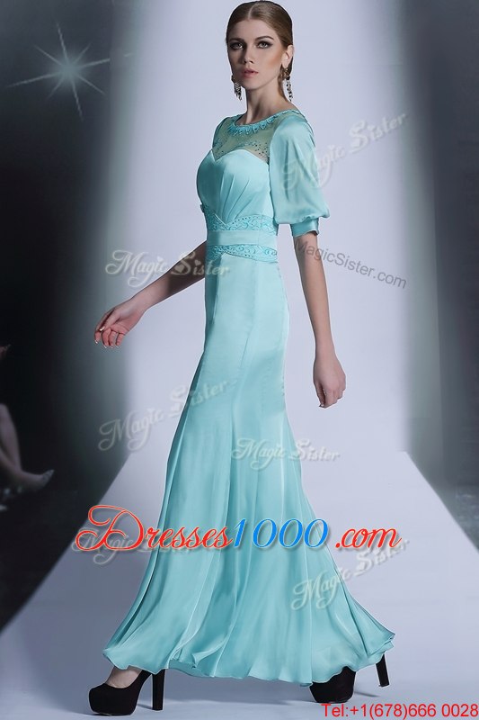 Aqua Blue Zipper Bateau Sequins and Pleated Homecoming Dress Chiffon Half Sleeves