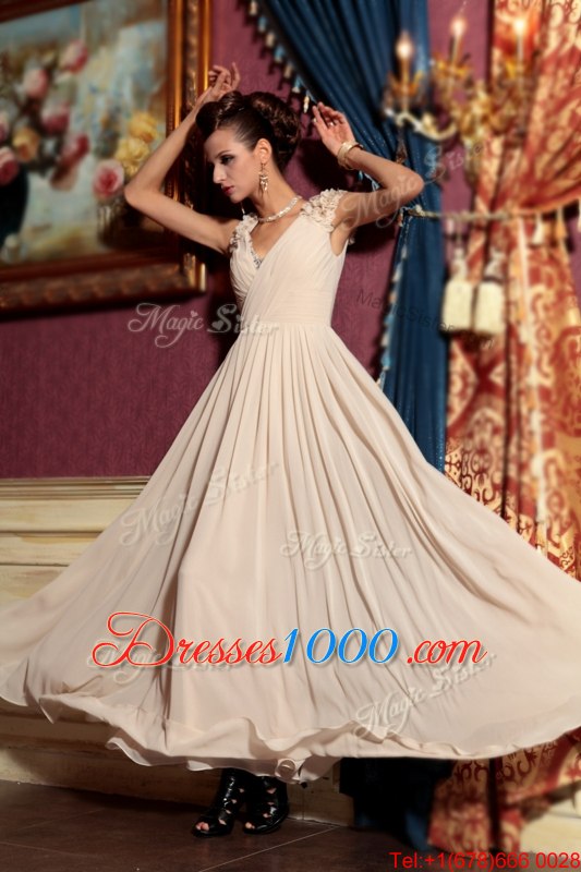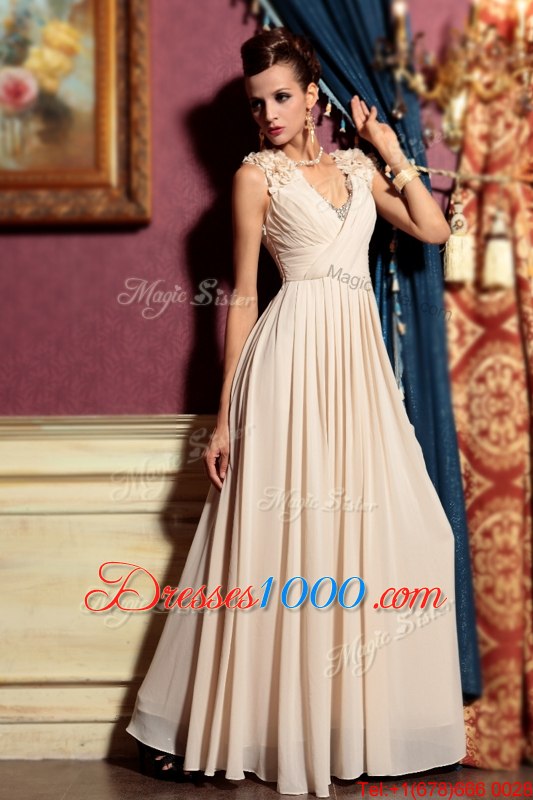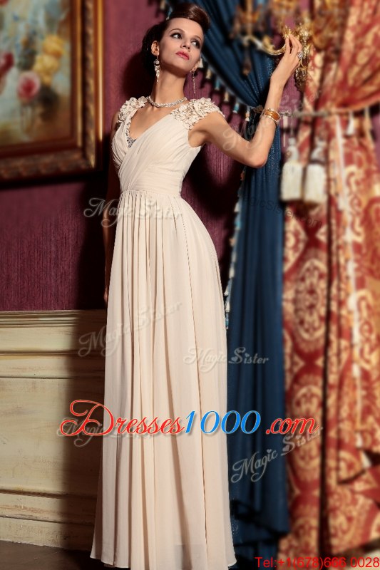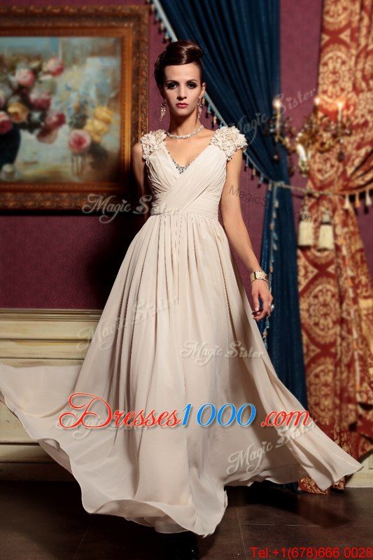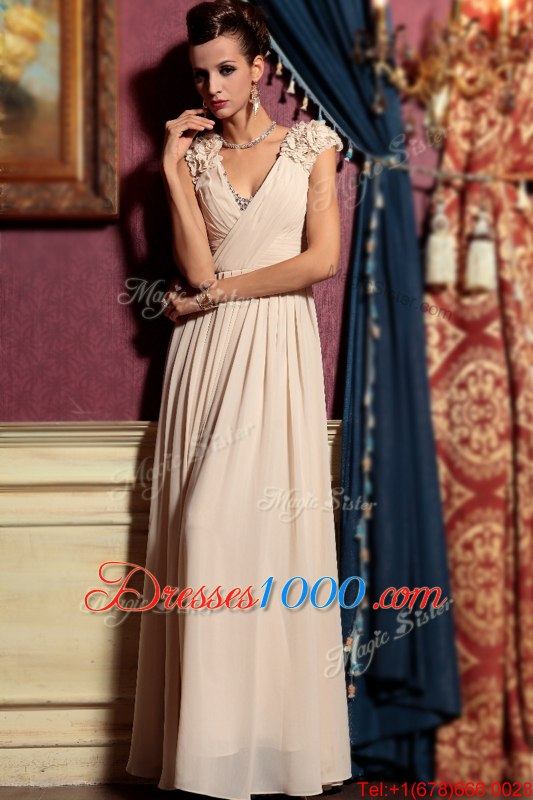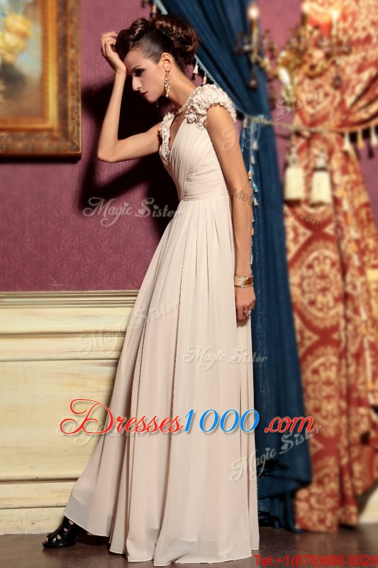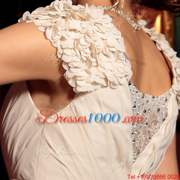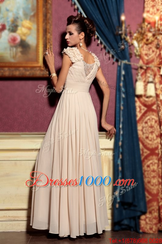 Fancy Cap Sleeves Side Zipper Floor Length Beading and Hand Made Flower Homecoming Dress