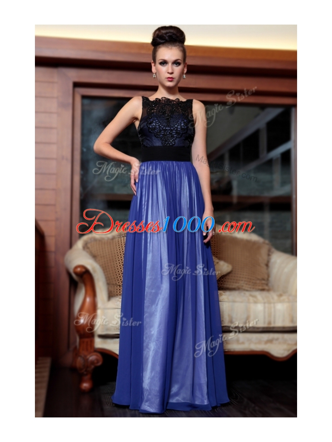 Sleeveless Chiffon Floor Length Side Zipper in Blue And Black for with Beading and Appliques