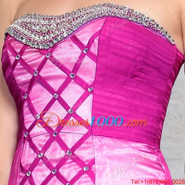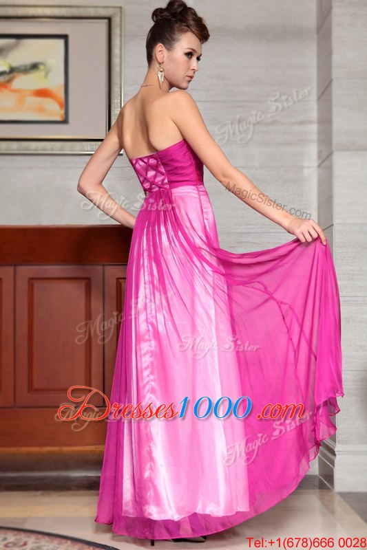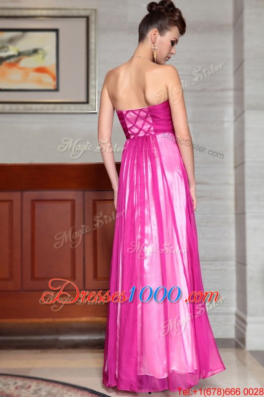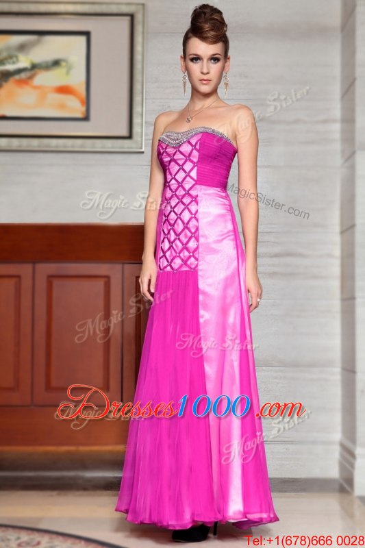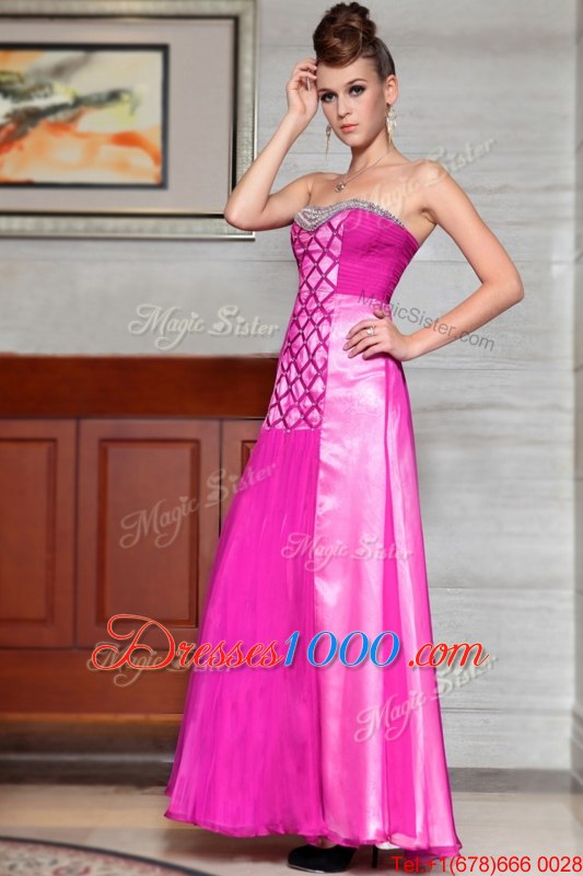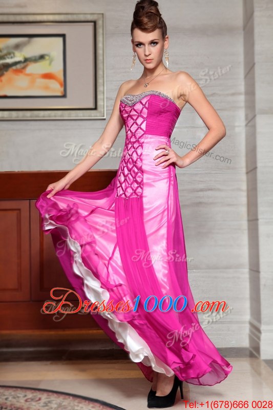 Ankle Length Fuchsia Prom Dresses Chiffon Sleeveless Beading and Ruching