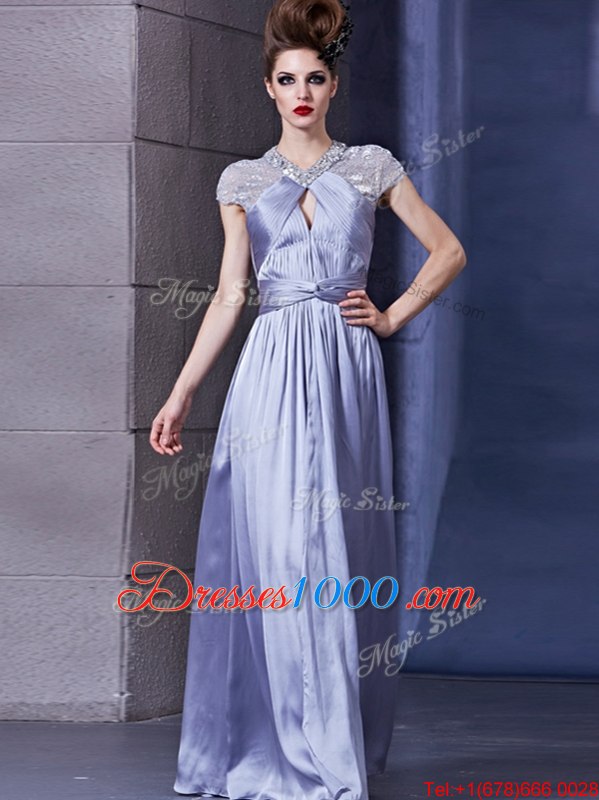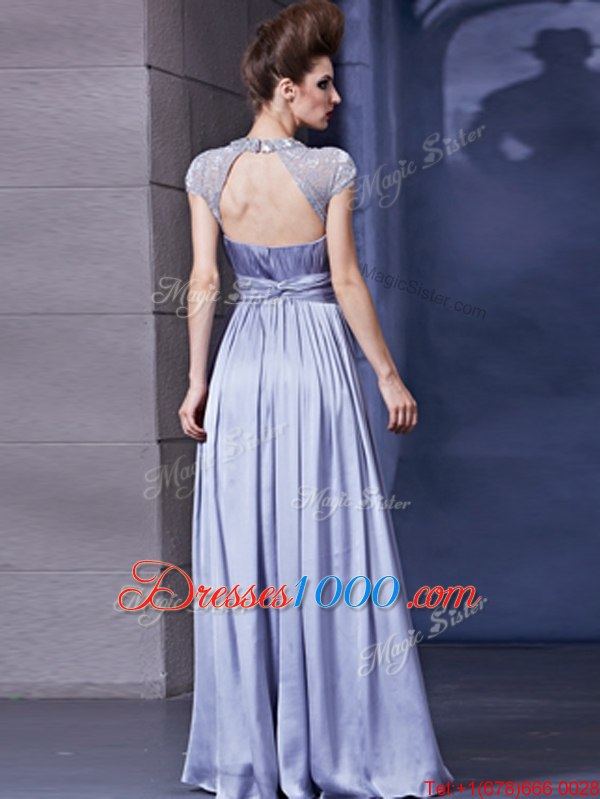 Clearance Chiffon Halter Top Sleeveless Zipper Beading and Ruching Dress for Prom in Lavender