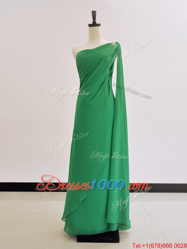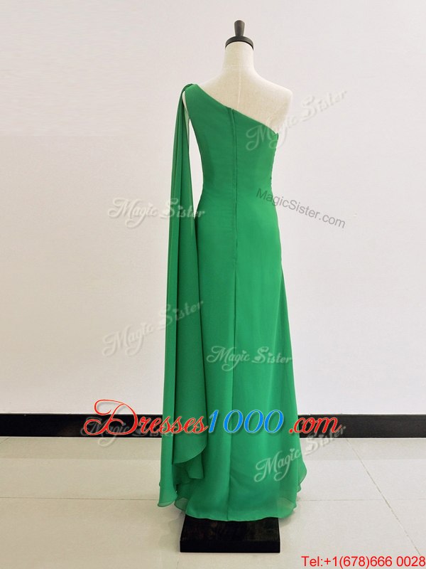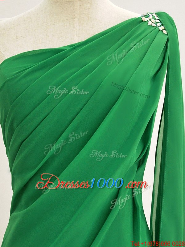 Extravagant One Shoulder Floor Length Column/Sheath Long Sleeves Green Homecoming Dress Zipper