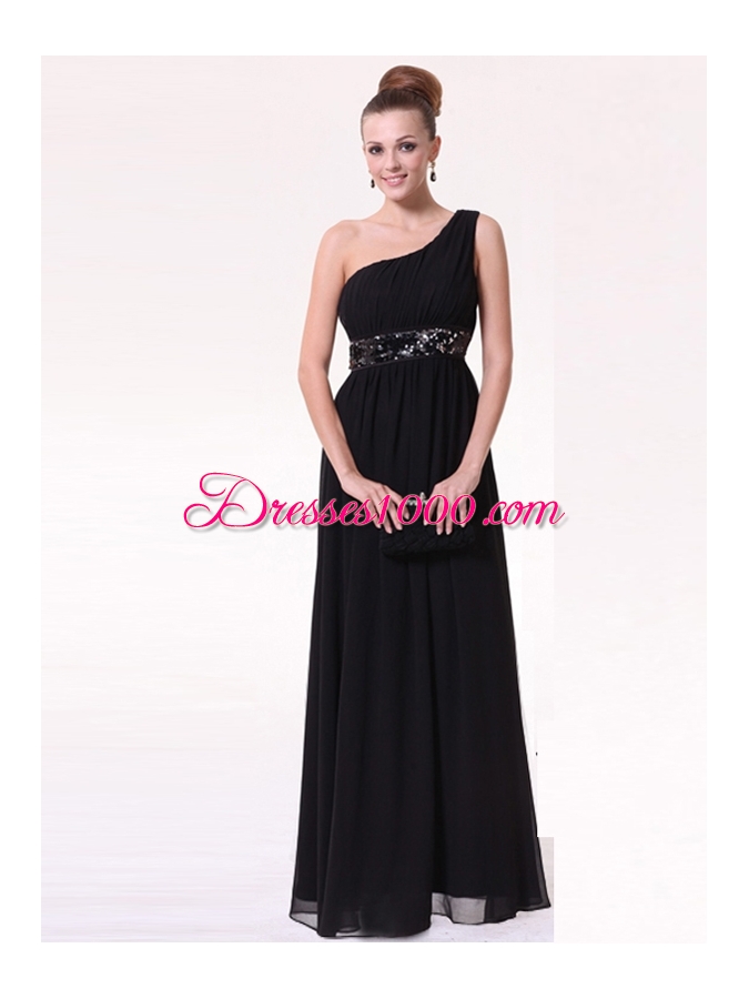 Column/Sheath Dress for Prom Black One Shoulder Chiffon Sleeveless Floor Length Side Zipper