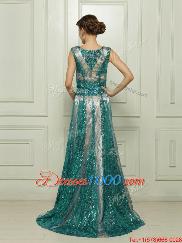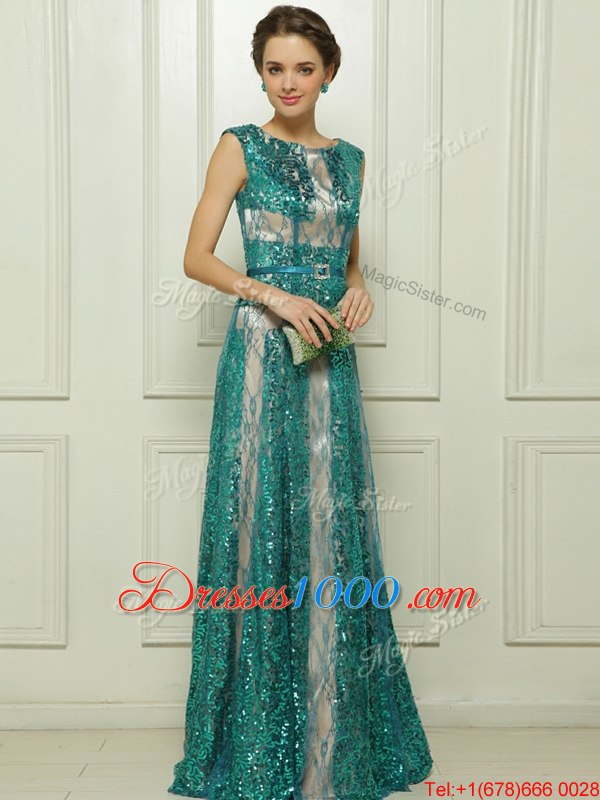 Scoop Teal Sleeveless Floor Length Beading and Sequins Zipper Going Out Dresses