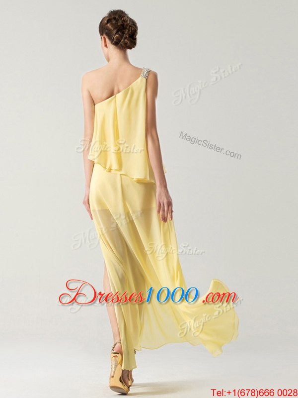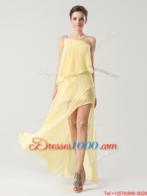 Modest One Shoulder High Low Column/Sheath Sleeveless Yellow Homecoming Dress Zipper