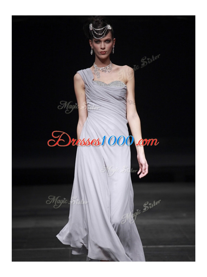 Customized Floor Length Silver Evening Dress Sweetheart Sleeveless Side Zipper