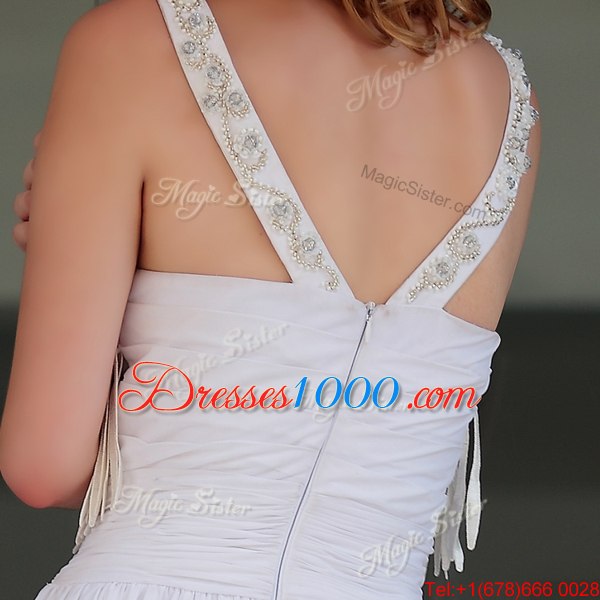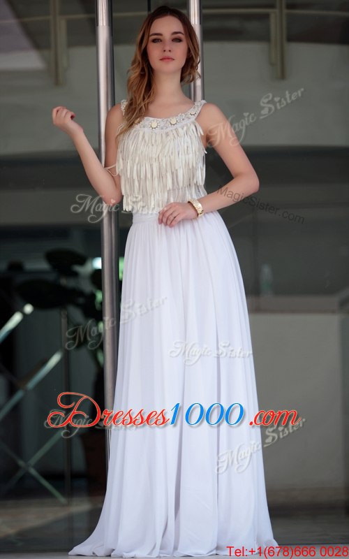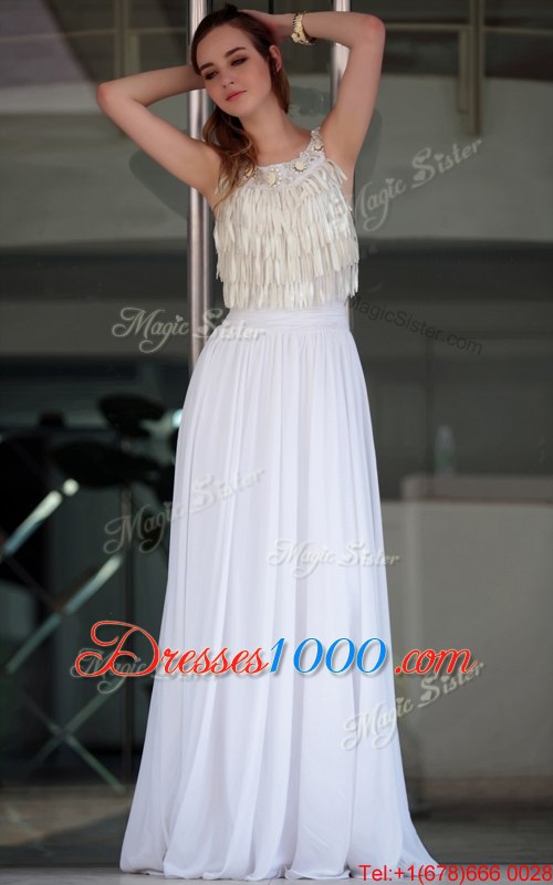 White Zipper Homecoming Dress Online Beading Sleeveless Floor Length