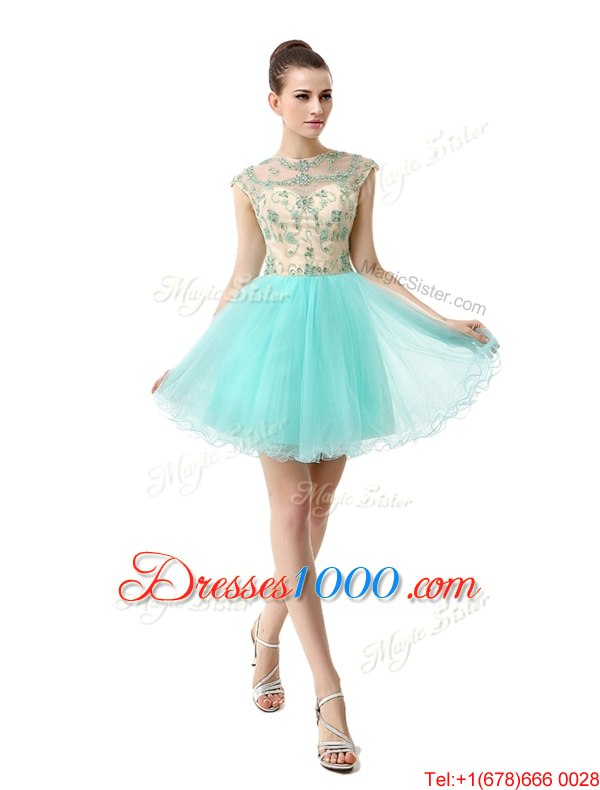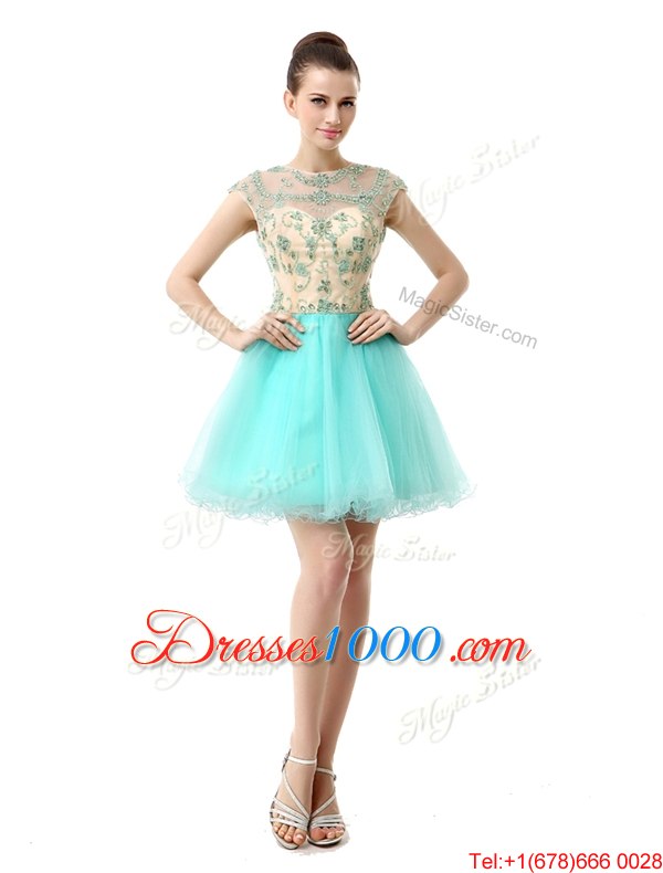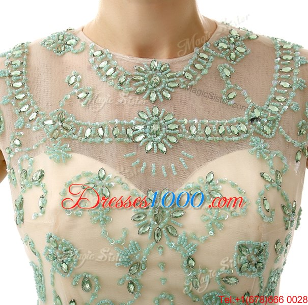 Noble Scoop Beading Juniors Party Dress Aqua Blue Zipper Sleeveless Knee Length
