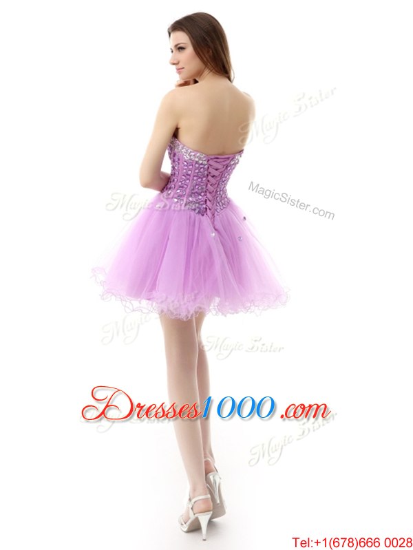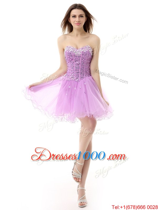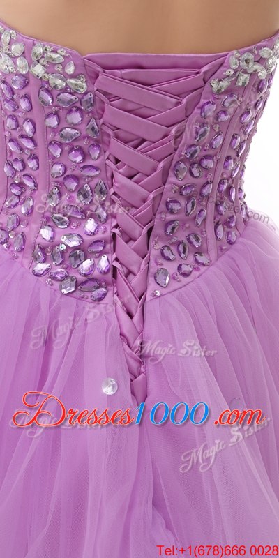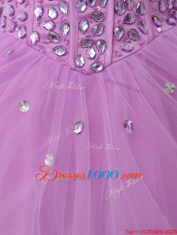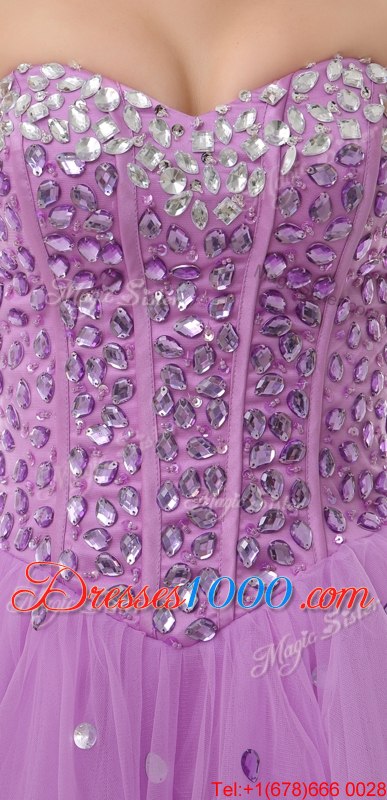 Fashion Knee Length Lace Up Custom Made Lilac and In for Prom and Party with Beading