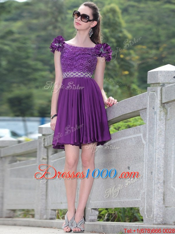 Scoop Purple Sleeveless Satin Zipper Party Dress Wholesale for Prom and Party