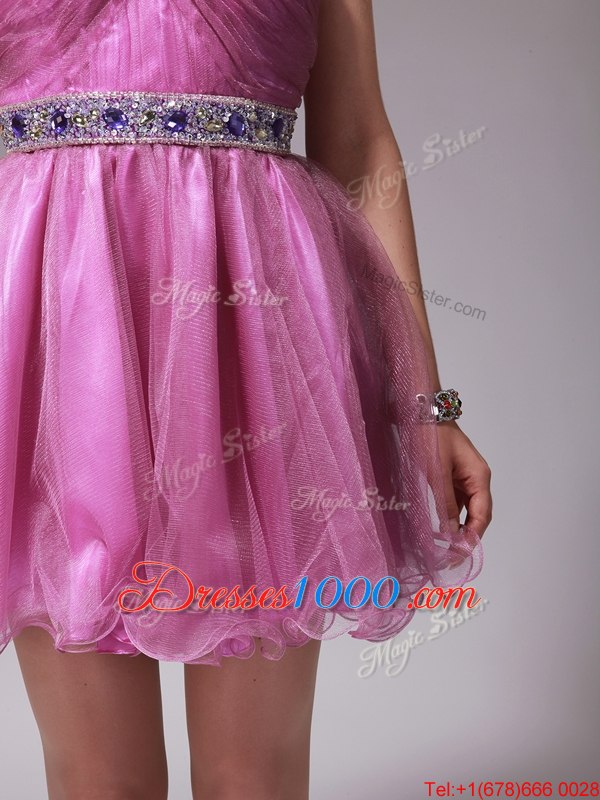 Halter Top Rose Pink Sleeveless Mini Length Beading Zipper Party Dresses