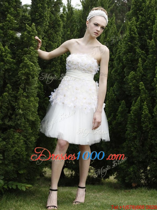 White Strapless Zipper Lace Party Dress Sleeveless