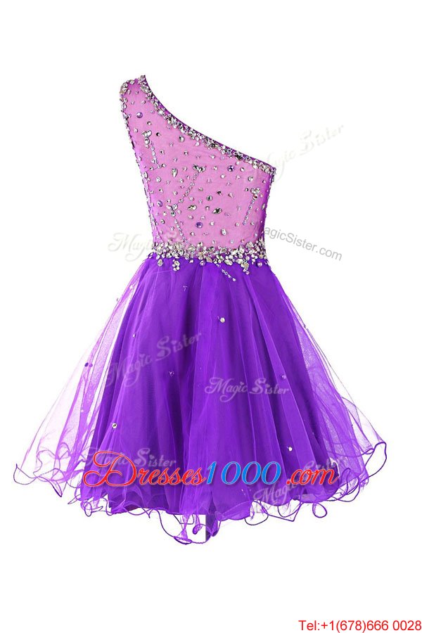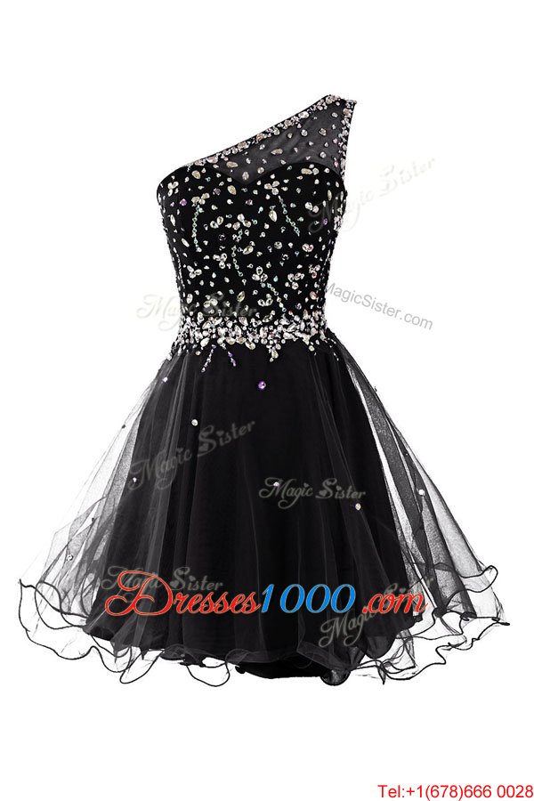 Dynamic One Shoulder Mini Length A-line Sleeveless Black Custom Made Side Zipper