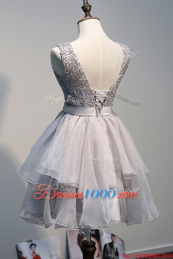 Scoop Grey Sleeveless Knee Length Beading Lace Up Casual Dresses