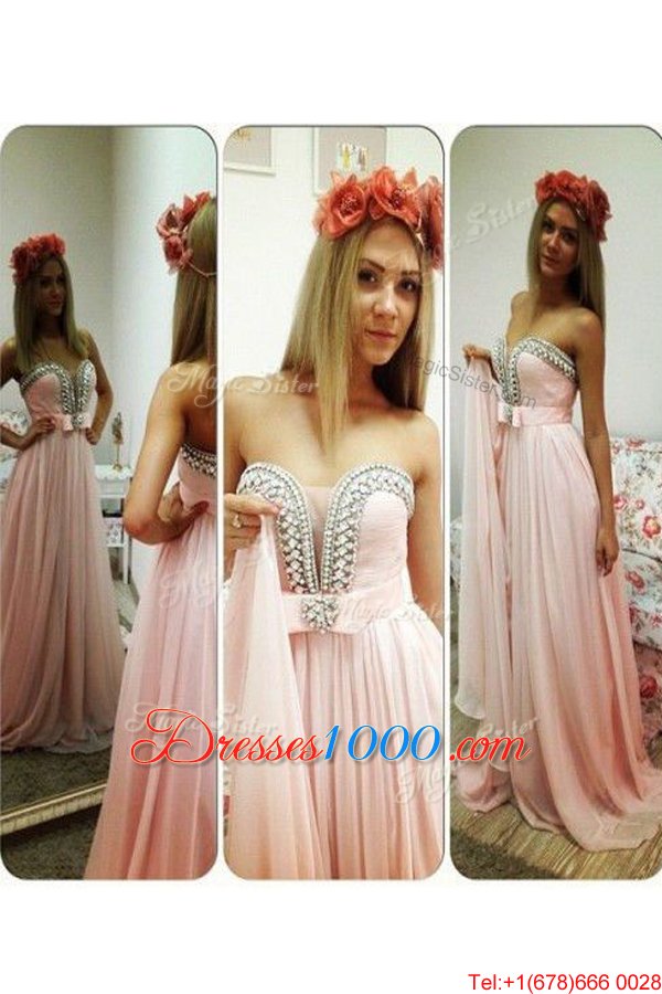 Sexy Chiffon Sleeveless Floor Length Formal Evening Gowns and Beading