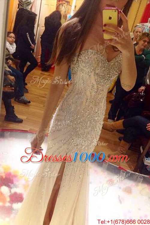 Most Popular Mermaid Going Out Dresses Champagne Sweetheart Elastic Woven Satin Sleeveless Floor Length Zipper