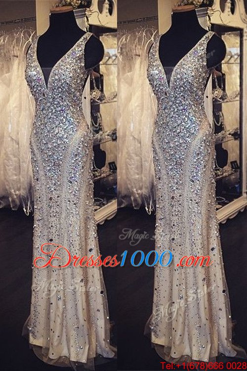Custom Designed Sleeveless Zipper Floor Length Beading Evening Outfits