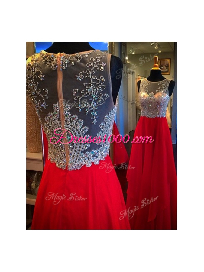 Chiffon Scoop Sleeveless Zipper Beading Homecoming Dress in Red