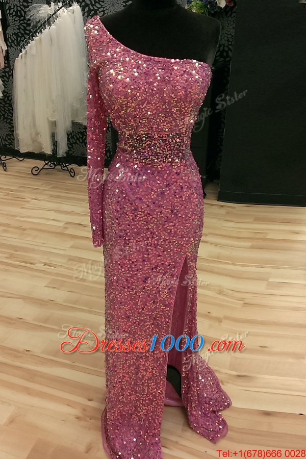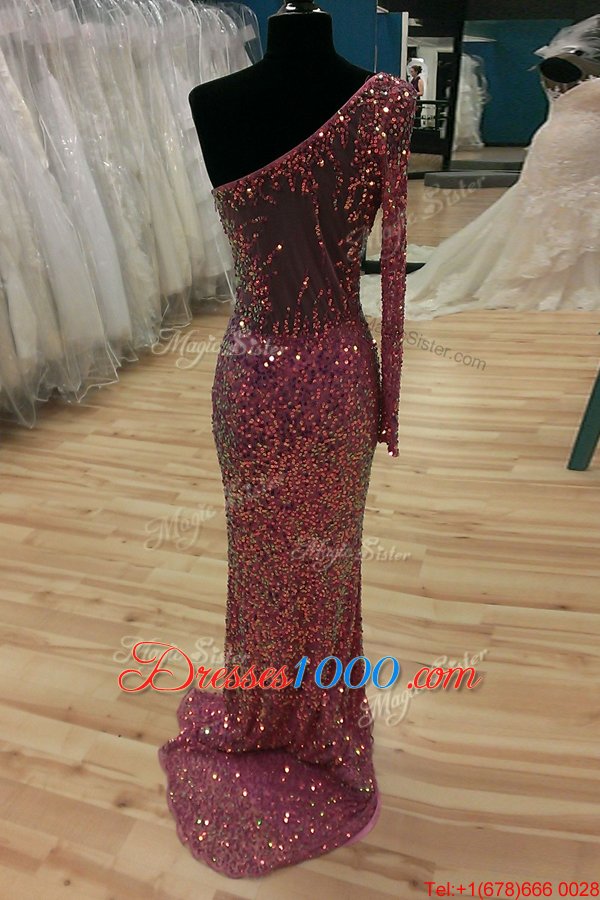 Mermaid Lilac One Shoulder Neckline Sequins Evening Outfits Long Sleeves Backless